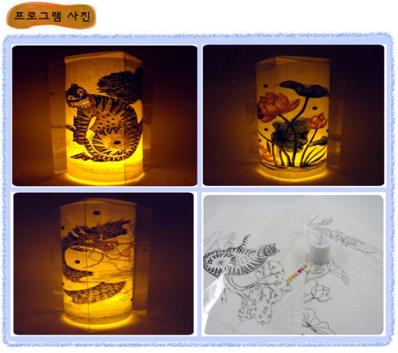 우리나라 전통 민화 그림 도안들을 이용하여 탁상용 조명등을 만들어보자.